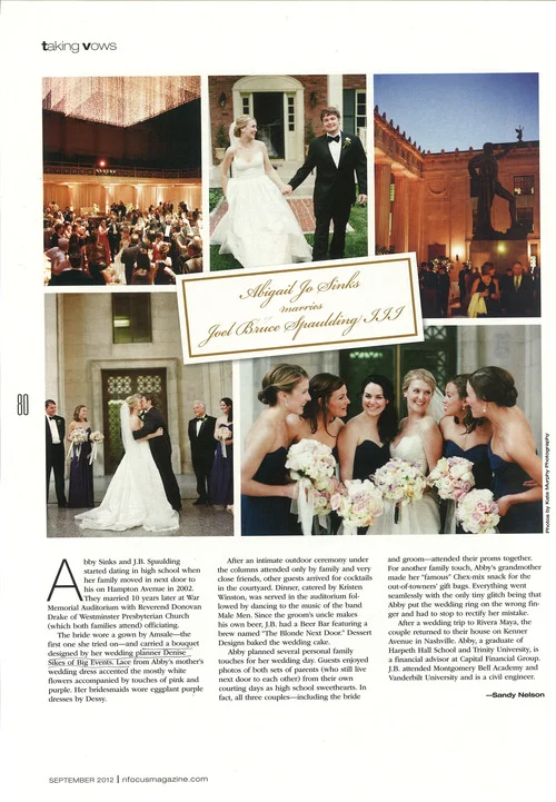 Voted "Best Wedding & Event Planner" in the 2013 Nashville Scene Reader's Poll.